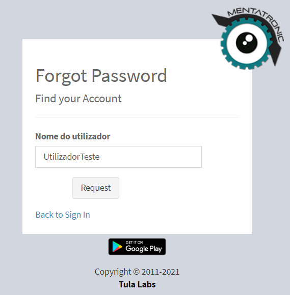 Especifique o seu nome de utilizador, e irá ser enviado nos 10 minutos seguintes, um e-mail para o e-mail a que está associado a conta, com instruções para recuperar a sua palavra-passe.